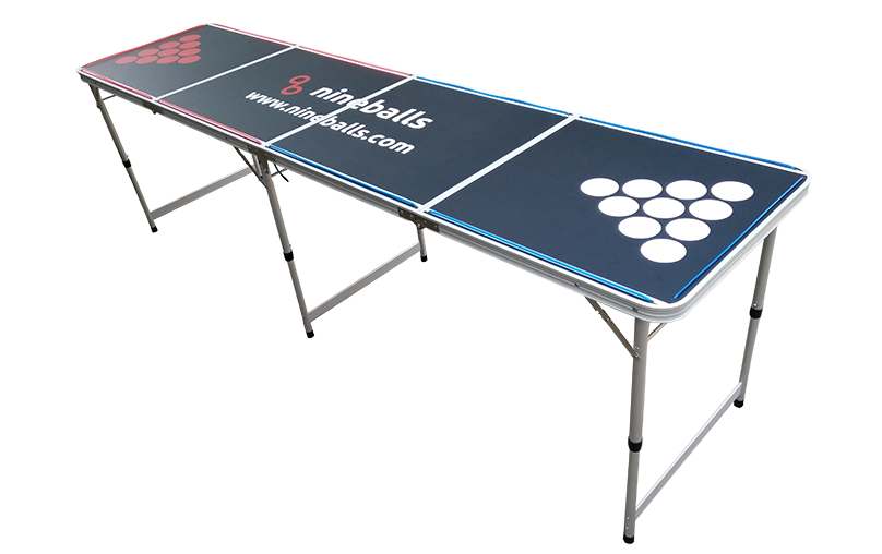 Beer Pong is typically played on a table measuring eight feet by two feet with ten cups arranged in a triangle pattern at each end...